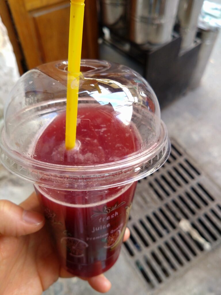 ザクロ 3、4個をその場で絞った、